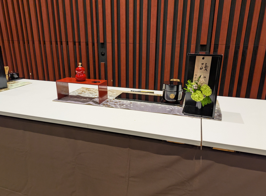 しかし、松平様からは「正座に慣れていない海外の方にも茶道に親しんでいただきたい」という温かいお考えを伺い、当会場のような机のある会議室での開催をご希望いただきました。