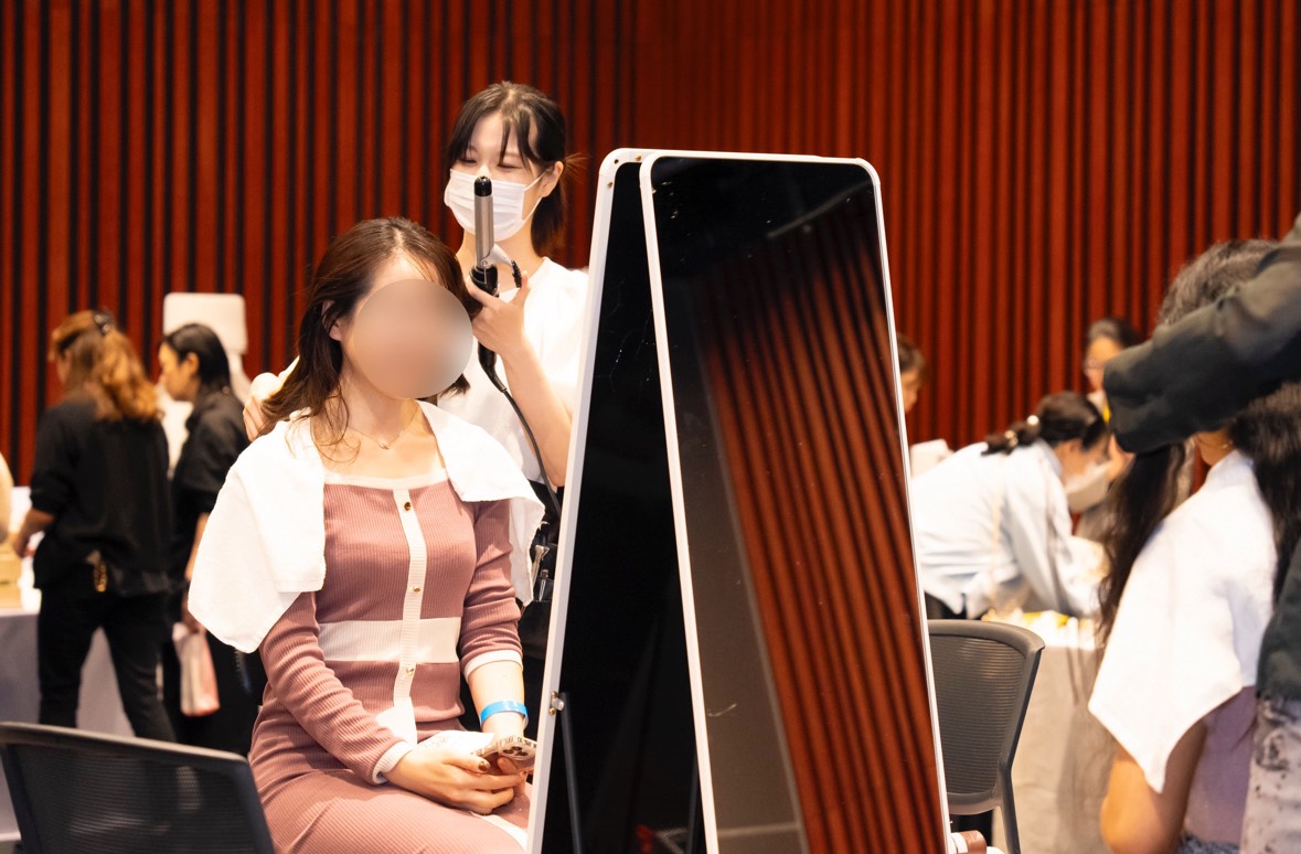 ホールの中央では美容師さんによるヘアーアレンジ体験などがあり、早速、長蛇の列ができておりました!