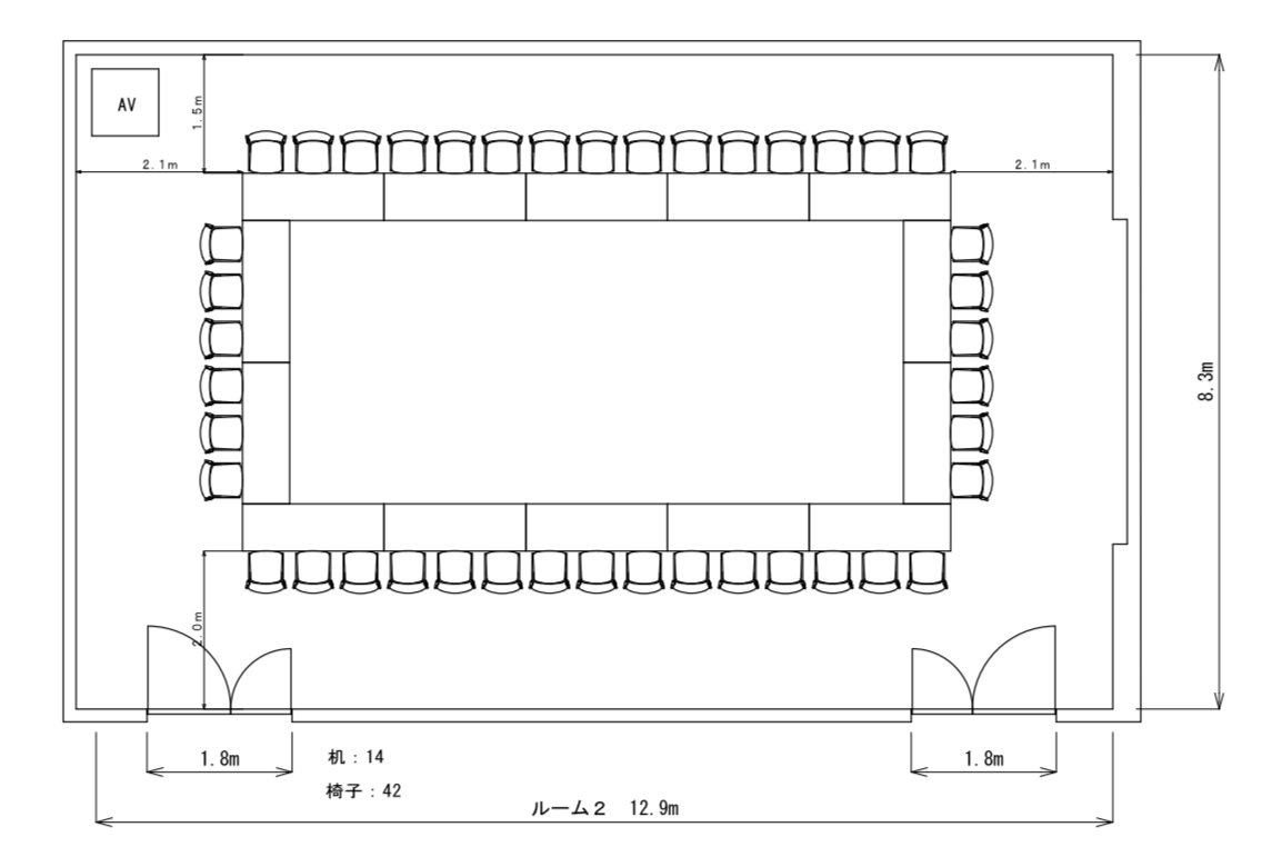 ルーム2は分割利用も可能で、少人数の勉強会やワークショップにもおすすめです。