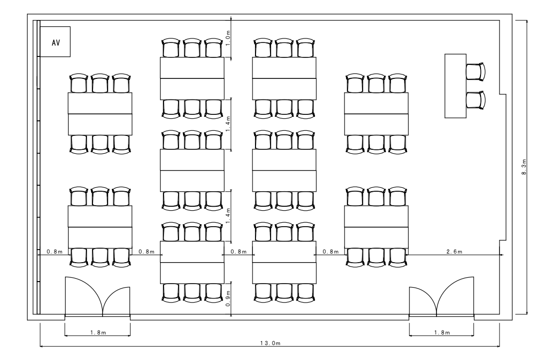 座席数や机の配置を工夫することで、参加者同士のコミュニケーションや集中力を高めることも可能です。