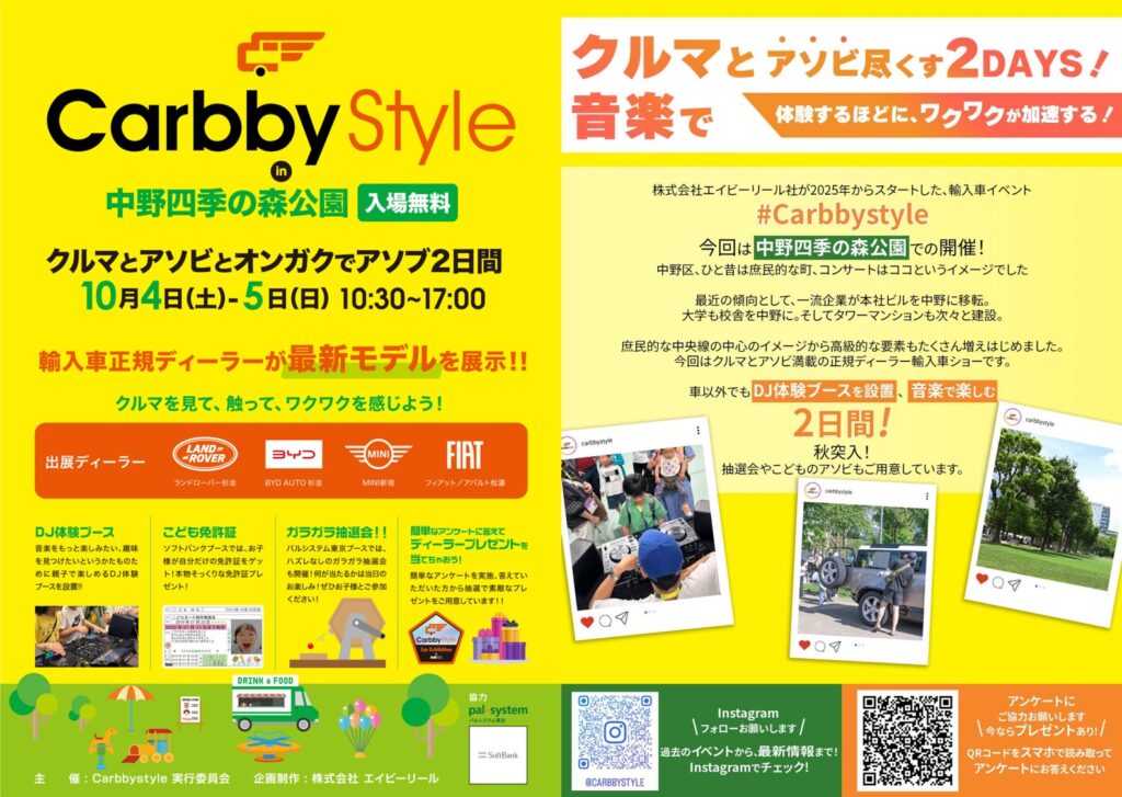 10/4(土)・10/5(日)週末は中野四季の森公園 芝生エリアの通路にて『carbbystyle in中野四季の森公園』が行われます!