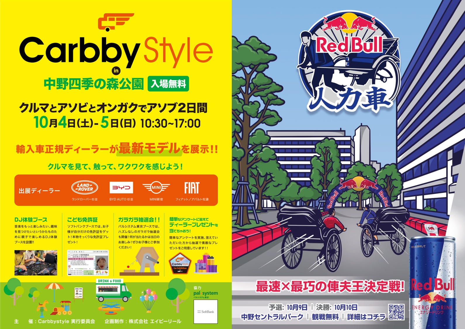 週末10/4(土)・10/5(日)は『carbbystyle in中野四季の森公園』、10/9(木)・10/10(金)は中野セントラルパークにて『Red Bull 人力車』が開催されます!