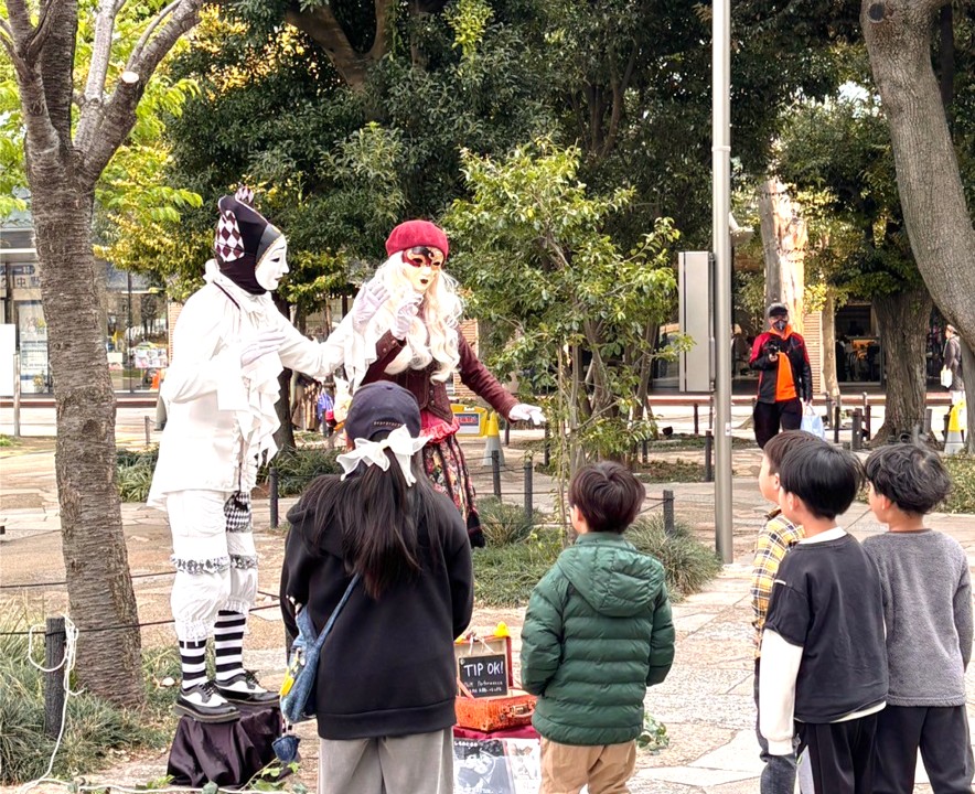 また、フリマと同時にウッドデッキ側では「大道芸」「音楽ライブ」も行われますので、お買い物・観覧・お散歩とお楽しみください。